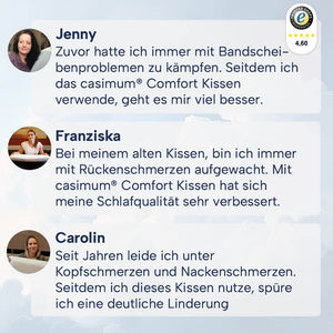 Das ist ein sehr individuelles Gefühl, was von Mensch zu Mensch variieren kann. Wir von casimum® würden sagen: Es ist optimal – nicht zu weich und nicht zu hart. Es passt sich deiner Kopfform an und ist daher sehr bequem und gleichzeitig angenehm stützend.