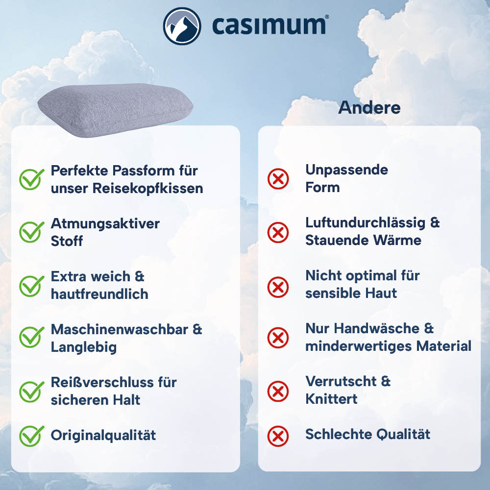 Speziell für casimum® Reisekissen »EASY TRAVEL« entwickelt – sitzt ideal und bleibt in Form.
