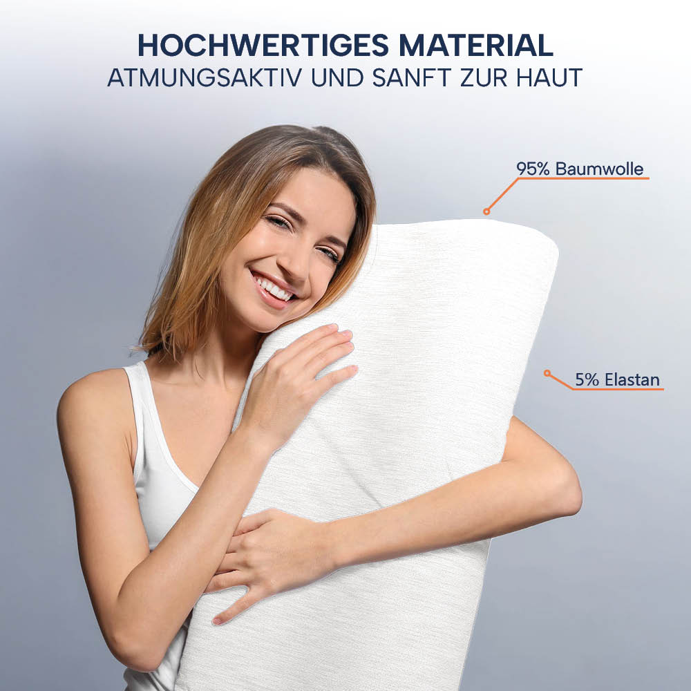 Dank der hochwertigen Materialmischung aus 95 % Baumwolle & 5 % Elastan schmiegt sich der Bezug perfekt an dein Kissen an – für ein traumhaft weiches Liegegefühl.