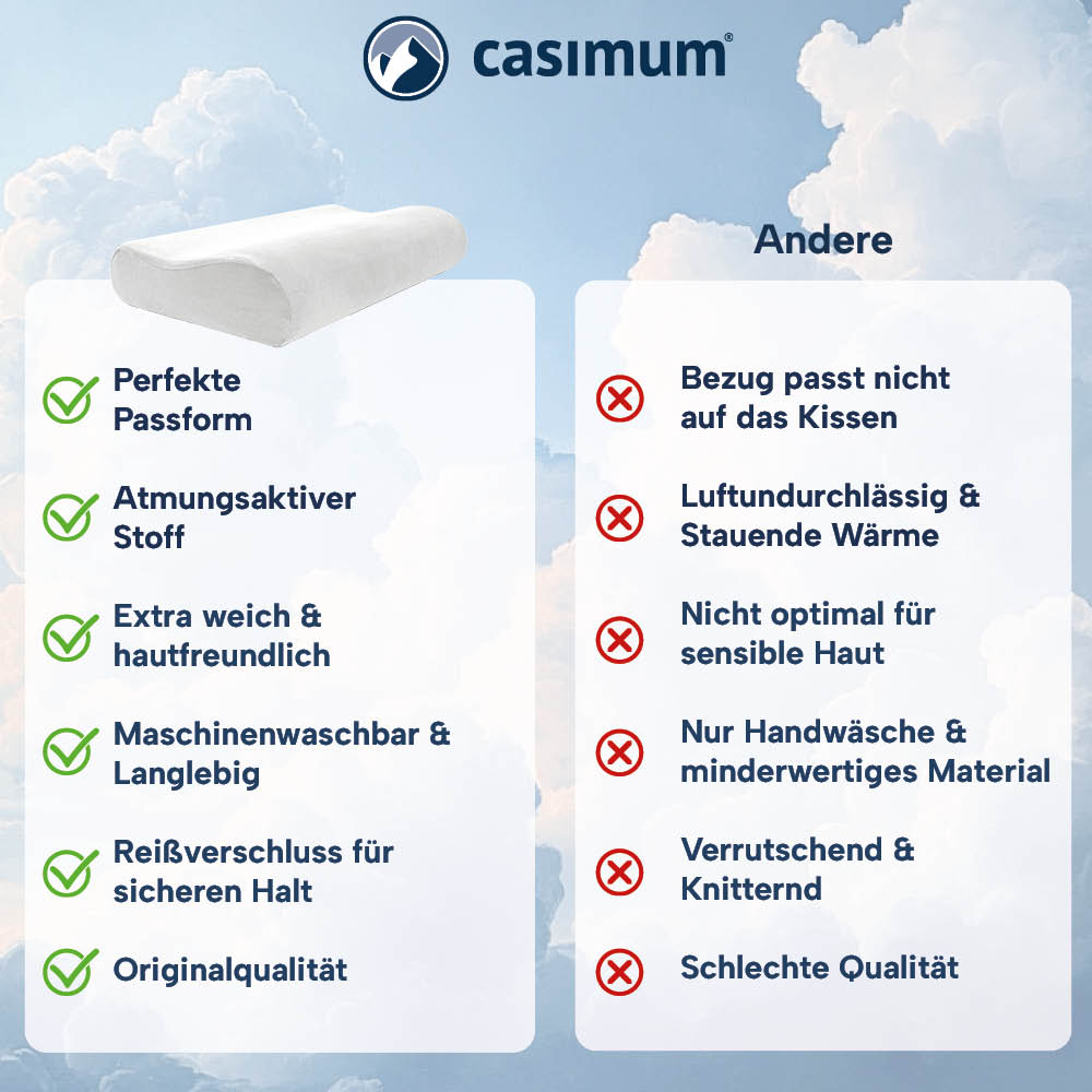 Unsere casimum® Schonbezüge schützen dein Kissen vor Verschmutzungen & Abnutzungen, sodass es länger hygienisch und frisch bleibt.