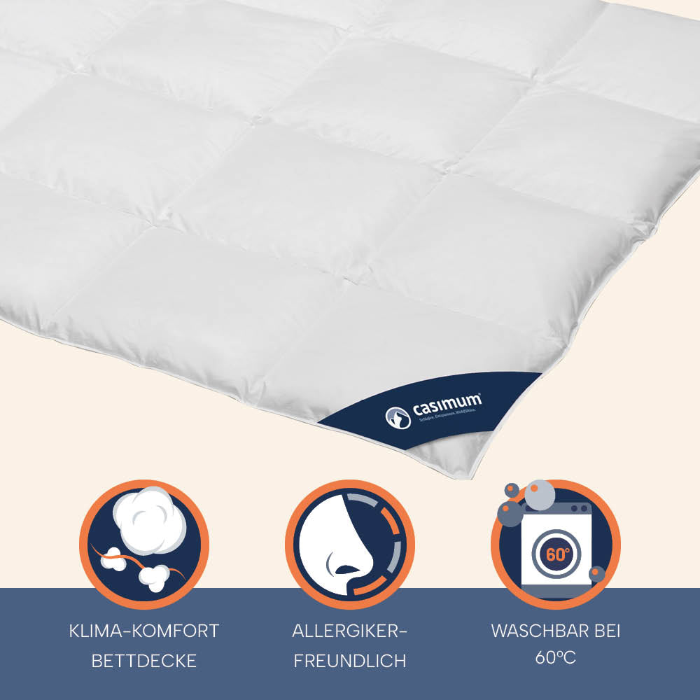 Ergänze deinen Schlafkomfort mit der Winterdaunendecke »COMFORT« und genieße das ganze Jahr über wohltuenden Schlaf.