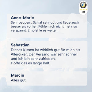 Ideal für Allergiker und alle, die ein pflegeleichtes, hygienisches Kissen mit zuverlässiger Formstabilität bevorzugen.