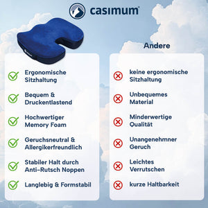 casimum® orthopädisches Sitzkissen aus Memory Schaum ist die ideale Wahl, wenn du auf der Suche nach einer effektiven Lösung für mehr Sitzkomfort und eine verbesserte Sitzhaltung bist.