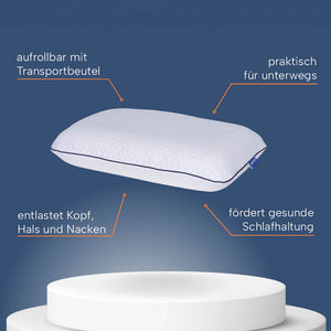 Der Schaumstoff reagiert auf Temperatur und Druck, wodurch das Kissen zu einer individuellen Unterstützung wird, die dir hilft, bequem zu schlafen und zu entspannen – auch während langer Reisen.