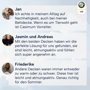 Dabei legen wir höchsten Wert auf Qualität und Nachhaltigkeit. Unsere Bettdecken sind besonders langlebig, sowie fair und tierwohlgerecht produziert. Zudem tragen sie wichtige Zertifikate, die dir garantieren, dass du ein verantwortungsvoll hergestelltes Produkt erhältst.